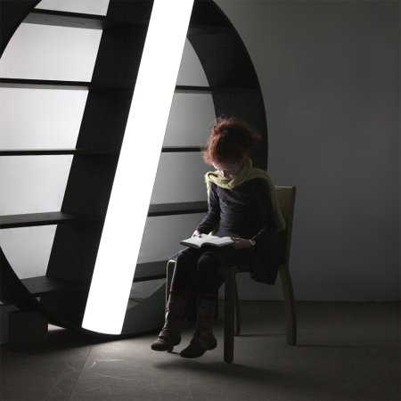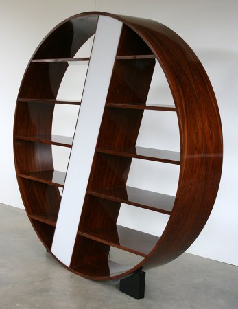 D’un diamètre de 1,95 m et d’une profondeur de 41 cm : le dos est un miroir et la face est une lampe.